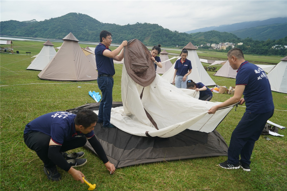 游戲中,員工們進(jìn)行了搭帳篷比賽、“千里一線牽”、廚藝大比拼、猜歌名等游戲。大家仔細(xì)地觀看教練搭建帳篷的過(guò)程,討論著策略,保證以最快的速度高質(zhì)量搭建帳篷;在“千里一線牽”的比拼中,每個(gè)團(tuán)隊(duì)通力協(xié)作完成運(yùn)送乒乓球的任務(wù),考驗(yàn)了員工的協(xié)調(diào)性和團(tuán)隊(duì)協(xié)作能力,大家紛紛為隊(duì)伍吶喊助威,經(jīng)過(guò)不斷地摸索和實(shí)踐,每個(gè)隊(duì)都出色地完成了任務(wù)。廚藝比拼環(huán)節(jié)中,員工們大展身手,炮制出一道道色香味俱全的硬菜,試菜員投票選出最佳菜品。
